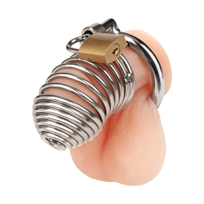 Experience ultimate control and confinement with the Prisoner Cock Cage. This cage is constructed from durable iron, ensuring maximum security and preventing any escape. The unique spring design adds an element of visual appeal, while the included lock ensures complete immobilization. Designed for comfort and extended wear, this cage provides a snug fit that enhances the sensations of restraint. Perfect for those exploring the world of chastity, this cage combines robust construction with a visually striking design, delivering an unparalleled experience in secure confinement.